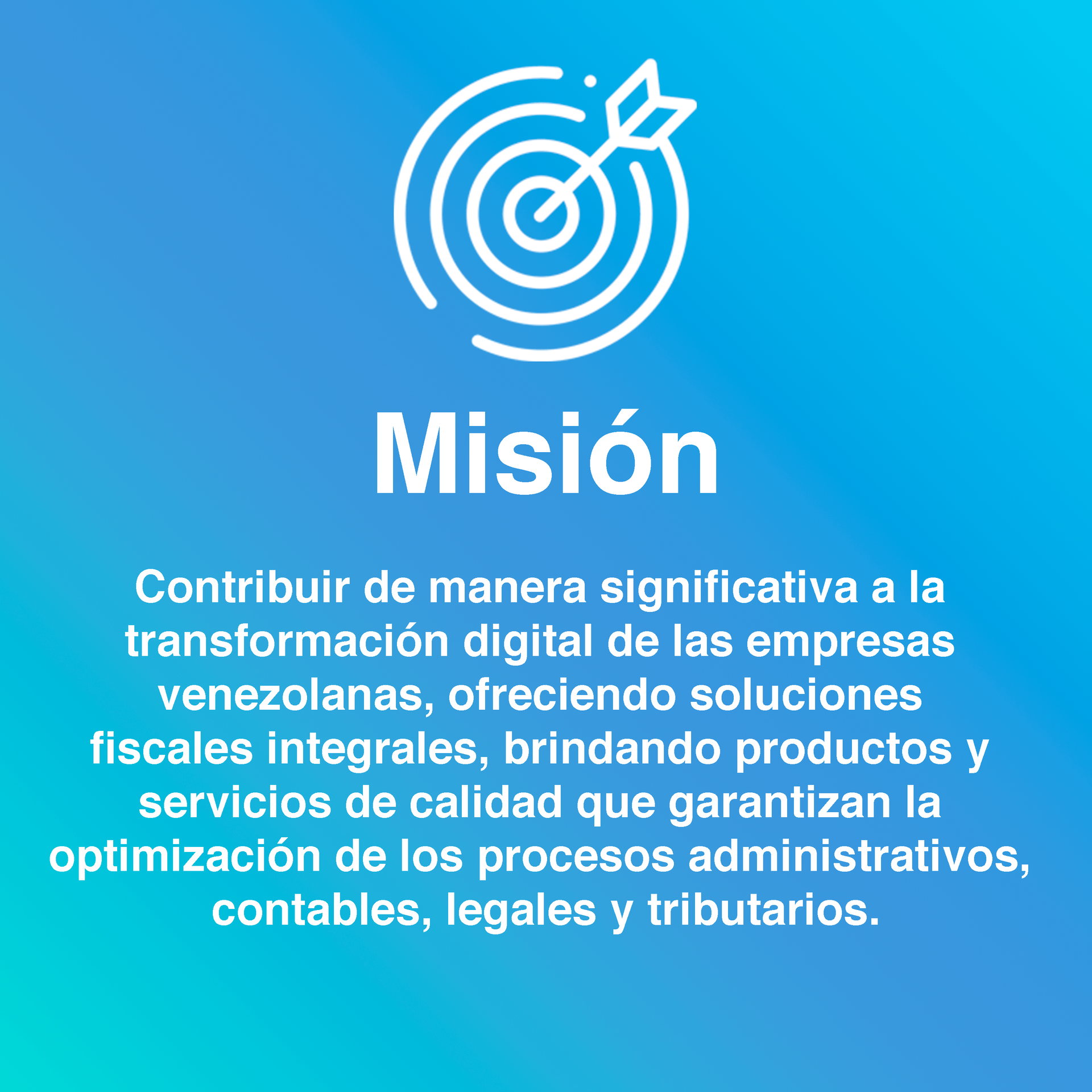 Contribuir de manera significativa a la transformación digital de las empresas venezolanas, ofreciendo soluciones fiscales integrales, brindando productos y servicios de calidad que garantizan la optimización de los procesos administrativos, contables, legales y tributarios.